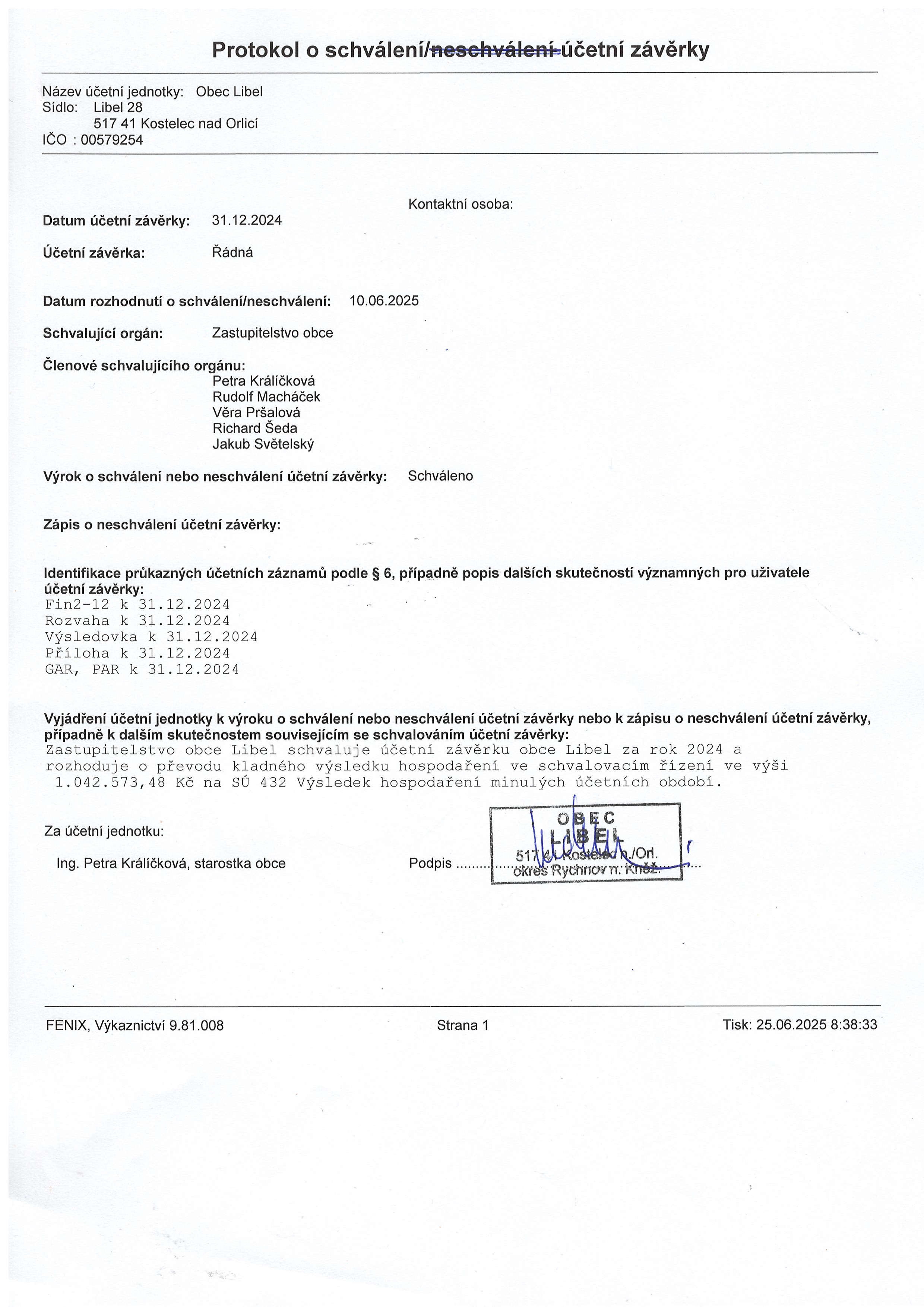 11.06 - 31.12.2025 Schválená účetní závěrka obce Libel 2024 pdf 65 kB