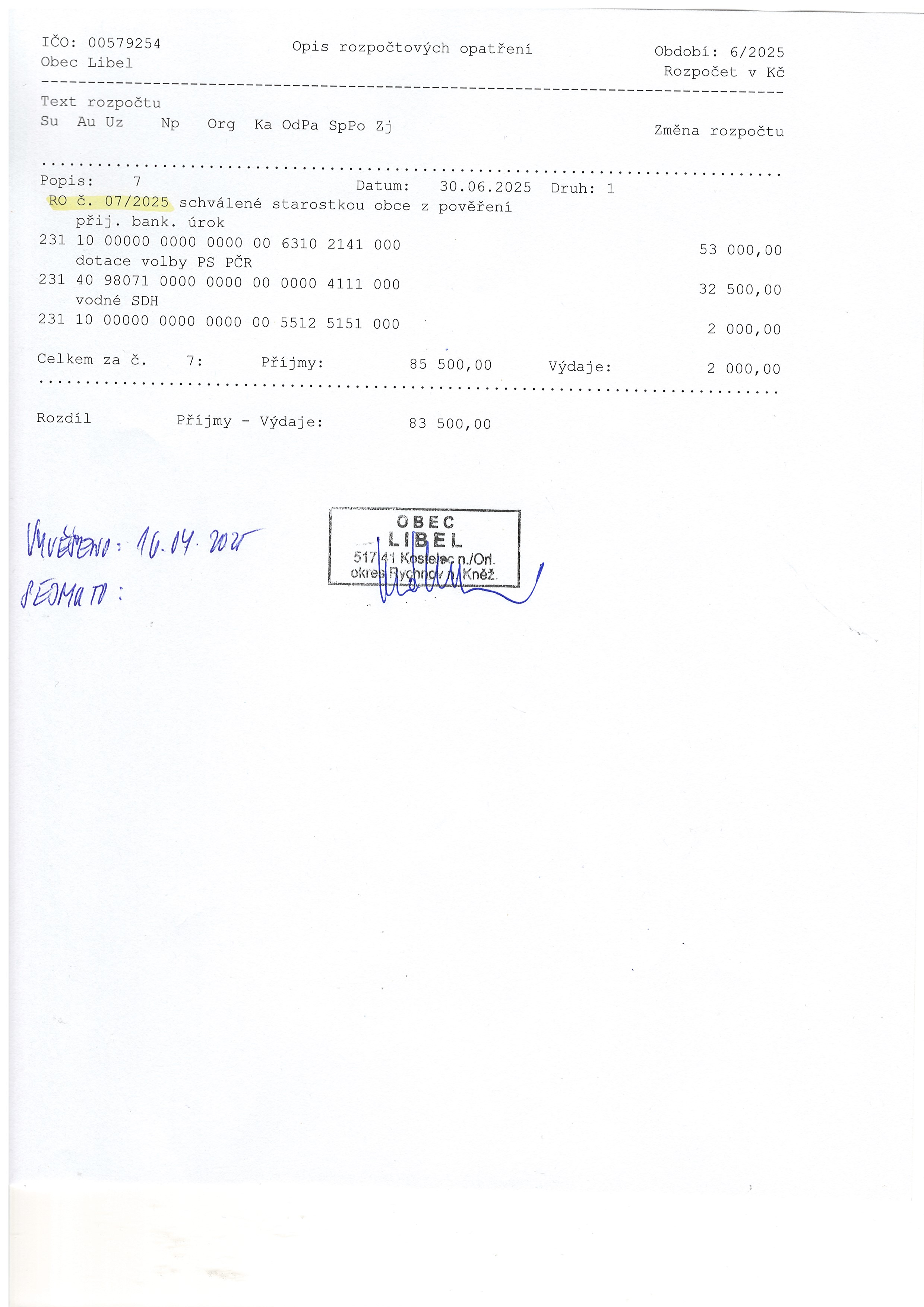 16.07 - 31.12.2025 Rozpočtové opatření č. 7