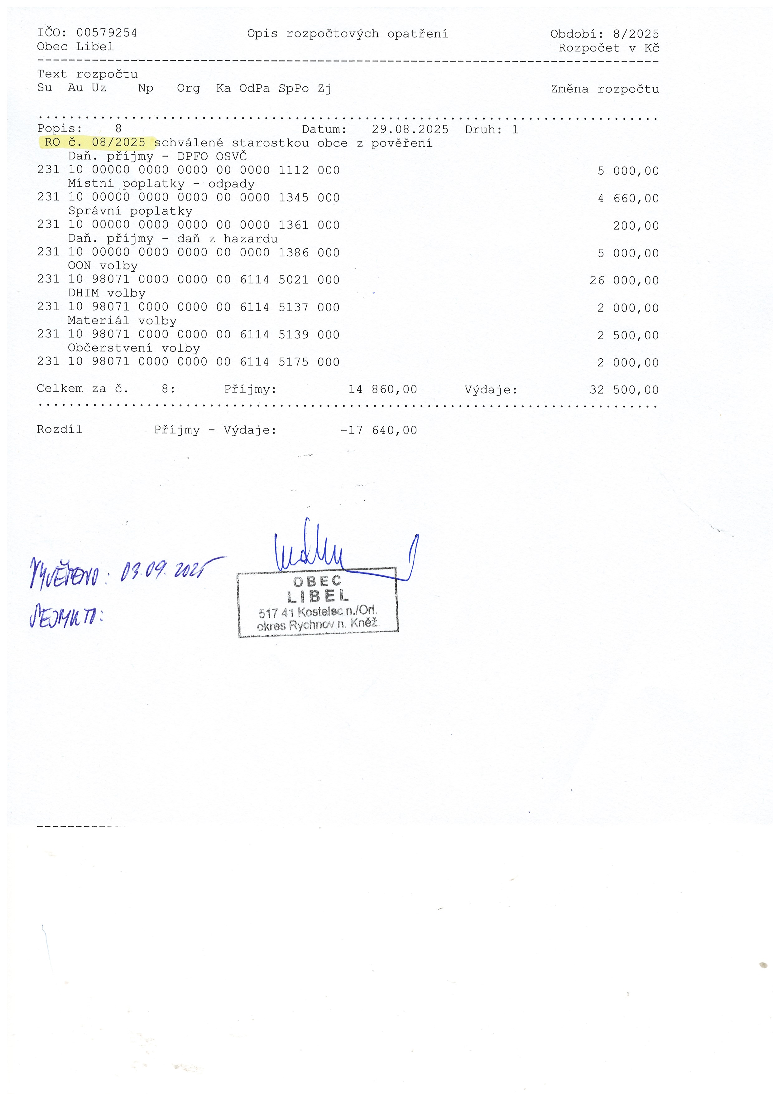 03.09 - 31.12.2025 Rozpočtové opatření č.8