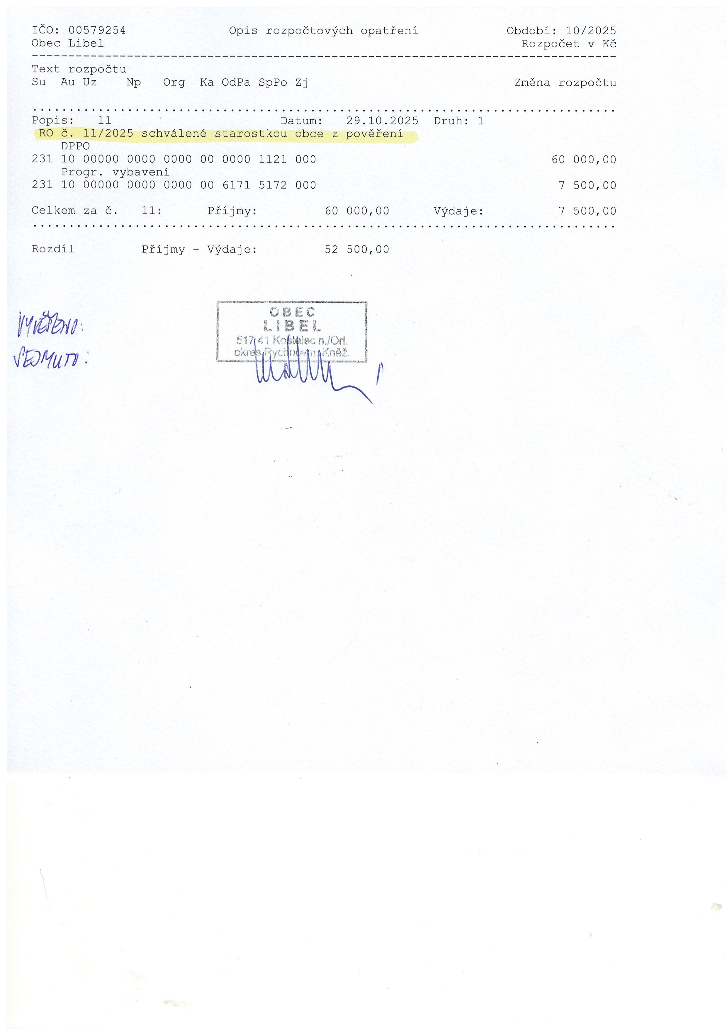 05.11 - 31.12.2025 Rozpočtové opatření č.11